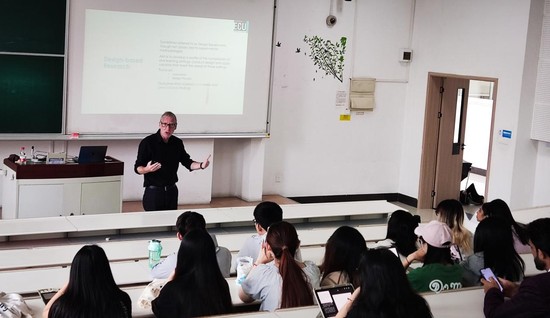 6月5日,艺术设计学院邀请澳大利亚伊迪斯科文大学艺术与人文学院副院长、国际发展战略部主任Mark McMahon教授,在教学楼C219作题为“如何运用设计思维进行有影响力的研究”的专题讲座。讲座由艺术设计学院李琦副教授主持,产业设计系副主任朱明洁等教师、本硕生与留学生共同参加。