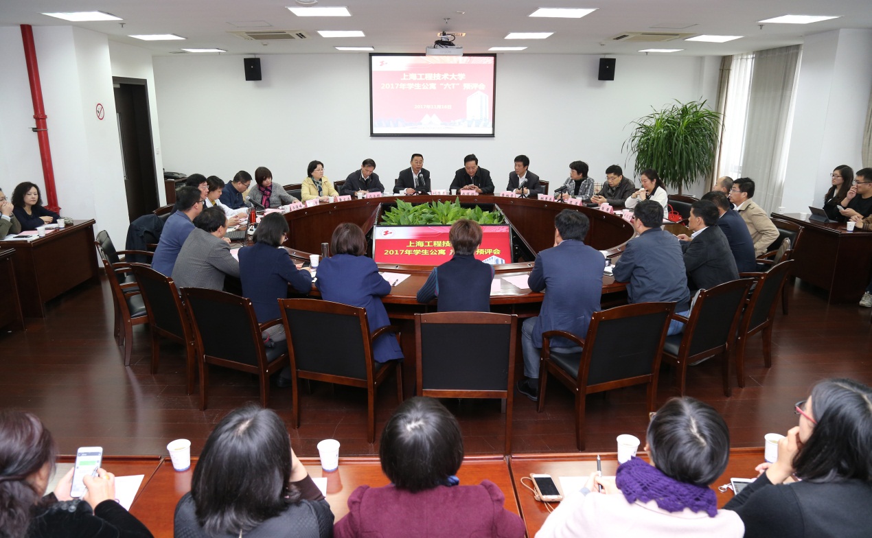 11月16日上午,由上海学校后勤协会常务副会长兼秘书长成冠润带队,上海高校学生公寓“六T”管理评估专家组等一行40余人来到我校,对申请“六T”的学生公寓进行实地检查和预评,副校长姚秀平出席预评会并致辞。