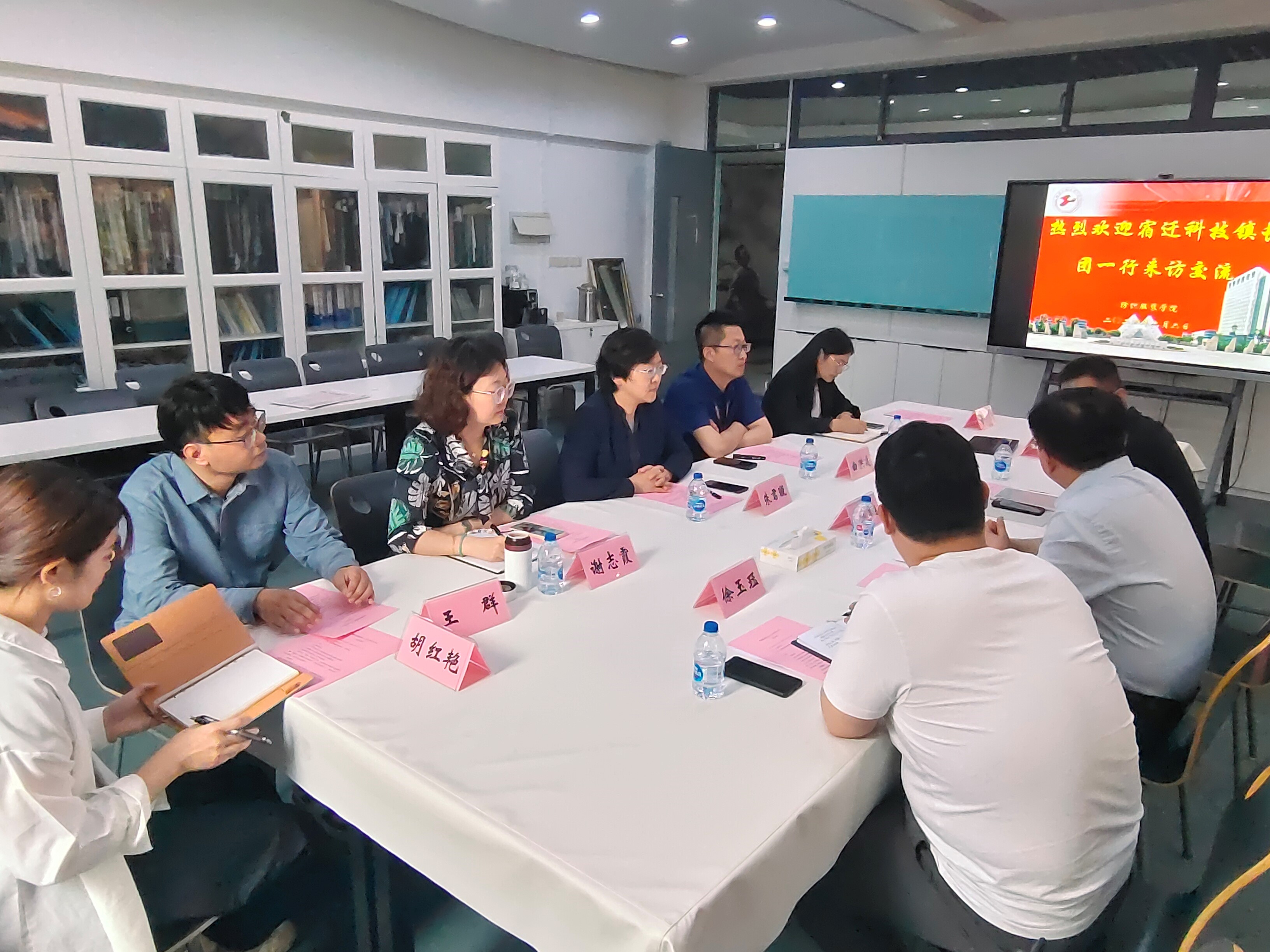 6月6日,宿迁高端纺织产业科技镇长团一行访问纺织服装学院,就进一步深化校地合作展开座谈交流。沭阳县副县长、宿迁高端纺织产业科技镇长团团长朱晓翔,沭阳县政府办文电科科长徐玉珏,纺织服装学院党委书记朱君璇,院长辛斌杰,副书记谢志霞,副院长曲洪建、徐丽慧,镇长团团员高彦涛教授,教师代表出席本次会议,会议在艺术楼C210召开,由曲洪建副院长主持。
