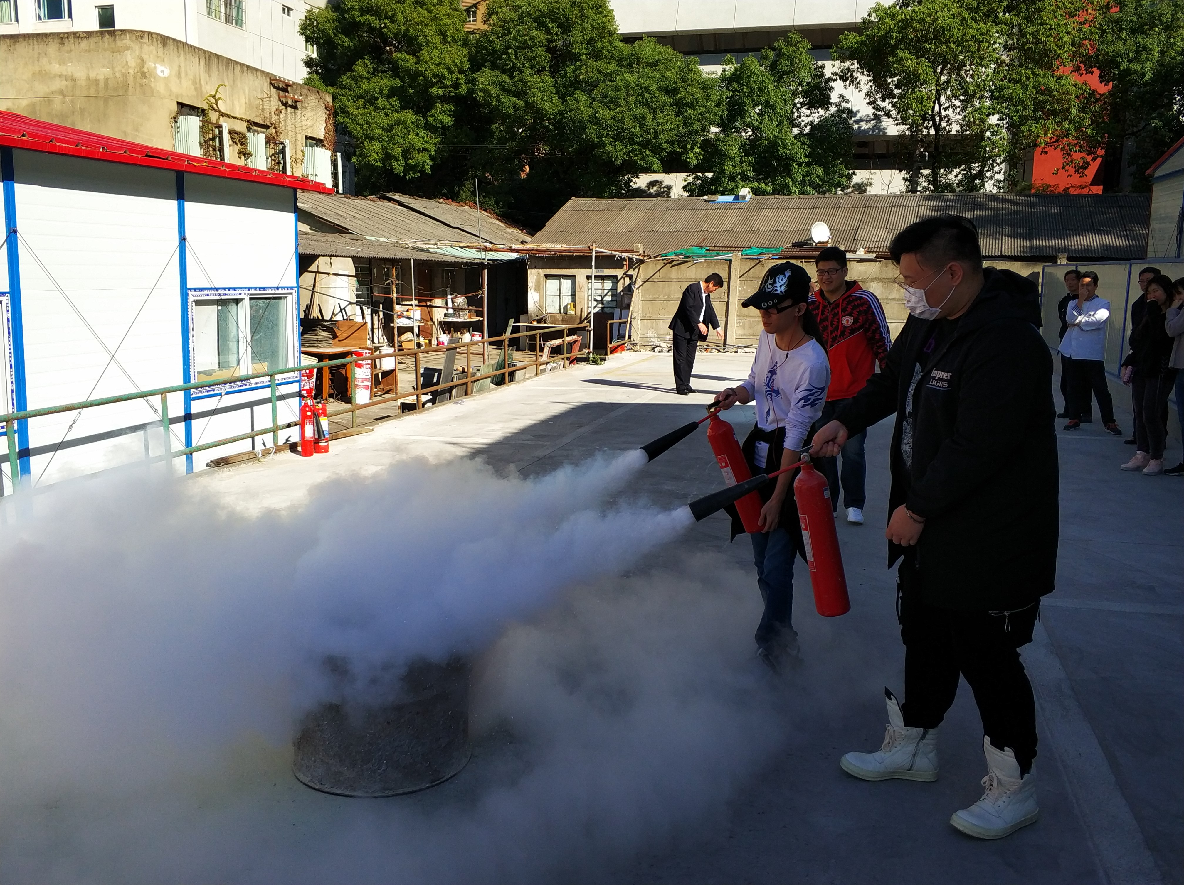 当天下午,在长宁校区操场,中法学院师生在校保卫处老师的指导下,开展了疏散逃生演练、消防器材学习、消防器材使用培训和实操演练等活动。为确保演练效果,演练前,中法学院制定详细、切实可行的消防演练方案,明确了参演人员的演练职责、演练内容、演练程序和要求。演练时,随着逃生演练指挥人员的一声令下,教学楼207内的“被困”师生用湿纸巾捂住鼻子,附身跑往消防通道疏散,在1分钟内全部安全疏散。通过开展此次消防演练活动,进一步强化了中法学院师生的消防安全意识,在应对突发火灾时能够学会沉着冷静,正确处置;在日常学习工作中能够及时发现隐患,堵塞漏洞,为学院安全生产做出贡献。