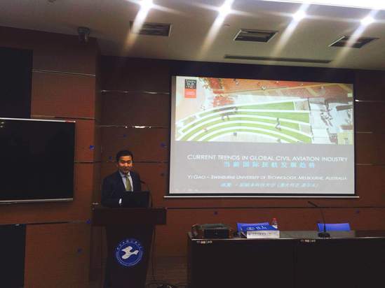 下午,高翼老师在航飞楼6109室作了题为“Current Trends in Global Civil Aviation Industry”的学术讲座,航空运输学院的教师以及研究生、本科生聆听了本次讲座。高翼老师首先对自己研究的领域和研究成果作了基本的介绍,接着和老师学生们分析了国际航空市场的发展趋势,接着剖析了中澳航空市场的需求以及未来航空领域面临着怎样的机遇和挑战。