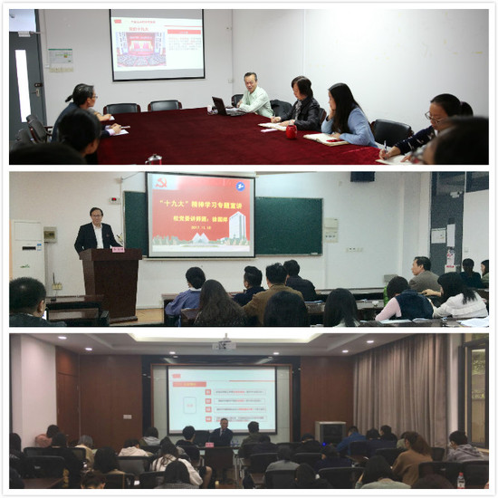 由每位校领导领衔的校党委讲师团,结合学校正在进行的二级党委换届选举工作,同时宣讲十九大精神,每到一处,都受到师生的热烈欢迎。讲师团专家与师生们分享自己的心得体会,从过去五年的历史变革、中国共产党的历史发展脉络、中国特色社会主义的基本方略,再到经济发展的美好前景,让师生受益匪浅。通过宣讲,广大师生表示对党的十九大精神和习近平总书记的新思想有了更加通透的了解,坚定了走中国特色社会主义道路的信念。大家纷纷表示,要切实把思想和行动统一到十九大精神上来,把智慧和力量凝聚到全面贯彻十九大精神上来。