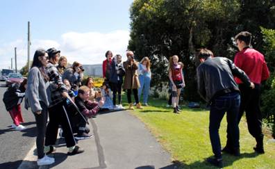 在完成动态秀展示后,中新项目双方学生分别在上海和达尼丁互拍的时装摄影作品参加了持续一周的设计学院静态展。在到达达尼丁后,学生们根据设计作品主题和风格选择了海边、牧场、火车站等拍摄场地,在为期三天的拍摄活动中,就如中法学院师生为新西兰学生在上海拍摄作品时提供的全程支持一样,奥塔哥理工学院的项目组师生给予全面的配合。而在时装大片的拍摄过程中,从开拍前的妆容发型,到拍摄过程中灯光、环境、大片构图的策划,都由学生们自己合作完成,学生们发挥个人的优势进行互补性合作,与新西兰模特沟通交流,并为其他同学的作品拍摄提供协助和建议,全面提升了团队协作和沟通交流能力。老师们则参与拍摄、选片和现场指导,最终顺利完成时装大片的拍摄、选片、修片、布展等一系列工作。