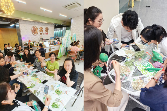 活动现场热闹非凡,不仅有继续教育学院、科技园的教工们参加,更是吸引了长宁校区老干部办公室、退管、国教等其他部门的教职工前来。活动现场每位老师亲手制作了艾草龙舟和艾草锤。艾草锤作为一种古老的非遗技艺,承载着丰富的文化内涵和实用价值。工会主席向大家讲解艾草锤的功效和作用,用艾草锤轻轻敲打身体的各个部位,不但可以缓解身体疲劳,促进血液循环,还能有效提高免疫力、安神助眠、宁神理气的作用。各位老师在制作视频的指导下,在说说笑笑间,一个个养生锤便制作完成了,大家迫不及待地拿起亲手制作的艾草锤,在身上捶捶打打。