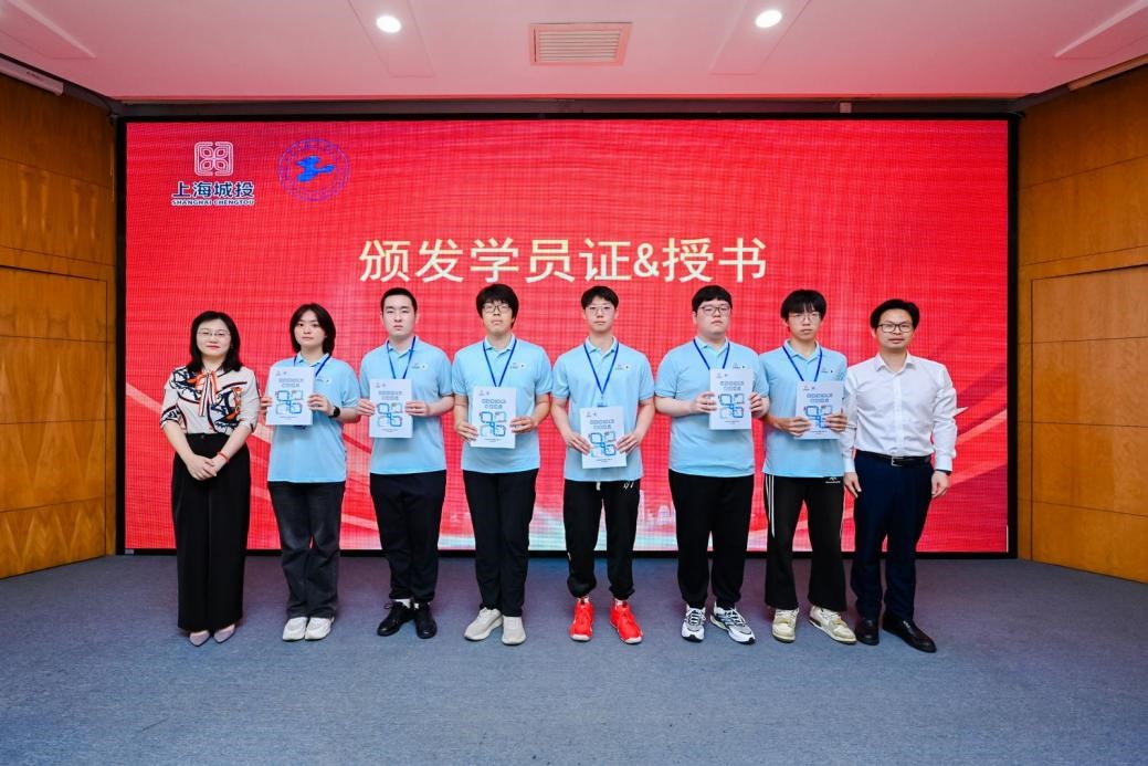 上海城投集团党委组织部(人力资源部)副部长、人才中心常务副主任曹珺,高职学院党委副书记、院长郑树彬为学员颁发学员证并授书。
