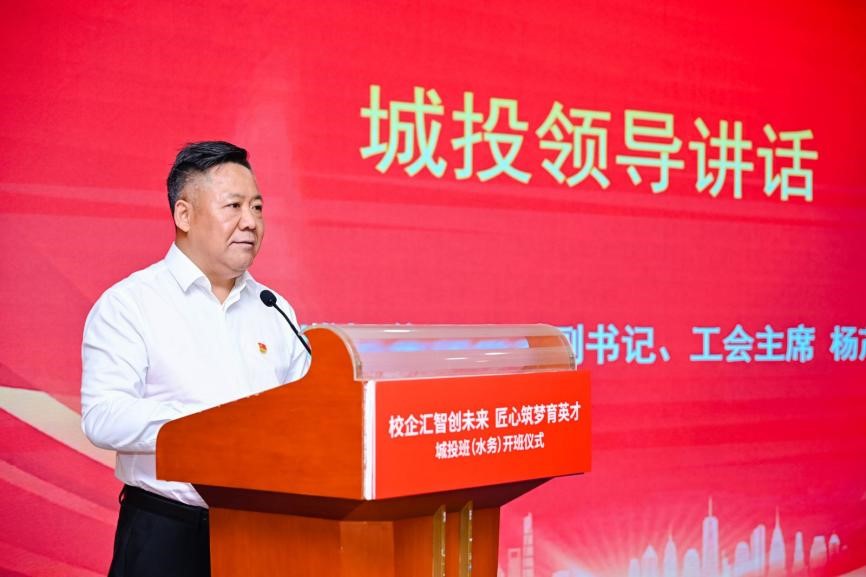 杨茂铎高度评价了本次校企联手、校企联建的育人举措。开办城投(水务)班是城投集团站稳主战场、建强主力军的实际需要,也是落实人才强企战略、做实人才兴企举措的具体行动,更进一步落实产改要求、加大产改力度的有力举措。他对本次校企合作办班提出三点期望:一是以“城投班”为起点,联手更联合;二是以“城投业”为重点,培育更培优;三是以“城投人”为锚点,成长更成才。