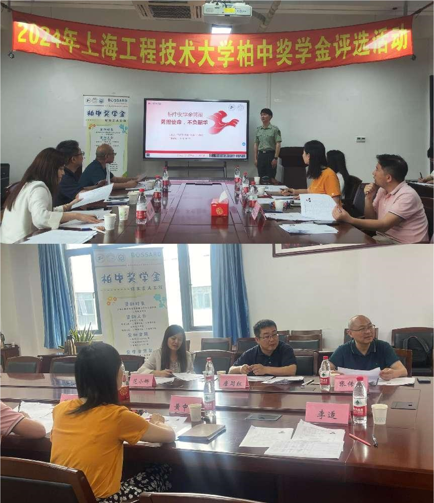 为持续加强学院培土育人工程品牌建设,推动校企合作共建,让社会爱心捐助促进校园学风建设,6月12日、13日,机械与汽车工程学院于交通楼8b604举行“培土育人工程”---“邦迪助学金”“柏中奖学金”评选活动。机械与汽车工程学院党委副书记黄中子、学工组长董春亮、资助辅导员李适、刘献博;柏中紧固件(上海)有限公司工程部经理唐周红、质量部经理张传宝、人力资源部经理范小娜作为评委出席评选活动。2022级研究生王雅兰等7名同学在助学金评选活动中脱颖而出,最终获得5000元邦迪助学金的奖励。21级本科生王飞扬、22级本科生陈新宇等11名同学在“柏中奖学金”评选活动中表现优异,分别斩获一、二、三等奖。两场评选活动合计资助金额8.8万元人民币。