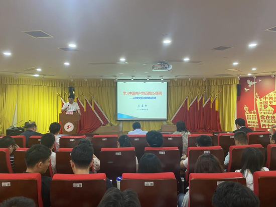王岩松以《从党史中学习党的群众纪律》为题,结合《中国共产党纪律处分条例》内容,重点从群众纪律内涵与理论依据、群众纪律建设的历史经验、关于党的群众纪律的论述三个方面进行了深入讲解,从国家,社会发展的不同阶段,诠释了群众纪律的重要性;对《条例》中关于群众纪律修订部分进行解读,通过分析违反群众纪律的典型案例,以案释纪,以案促学,进一步加深党员对群众纪律的理解把握。他强调,严明群众纪律充分体现了党的性质和宗旨,严明群众纪律是党带领人民推进中国式现代化的重要保证,严明群众纪律是深入推进党的自我革命的必然要求,每一个党员应该认真学习《条例》,明确自己联系群众、开展工作时的言行边界,真正做到学纪、知纪、明纪、守纪。