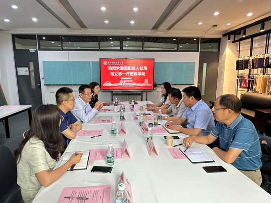 6月19日下午,江苏省泗阳县人社局就业服务中心主任刘立忠、副主任刘新华,江苏苏丝丝绸股份有限公司董事长刘文成、监事长司传忠访问纺织服装学院。双方重点围绕蚕丝在生产和织造过程中的品质问题开展技术研讨。纺织服装学院院长辛斌杰、副书记谢志霞、副院长曲洪建、纺织工程系副主任杨群、朱婕参加交流。交流会由纺织服装学院副院长曲洪建主持。