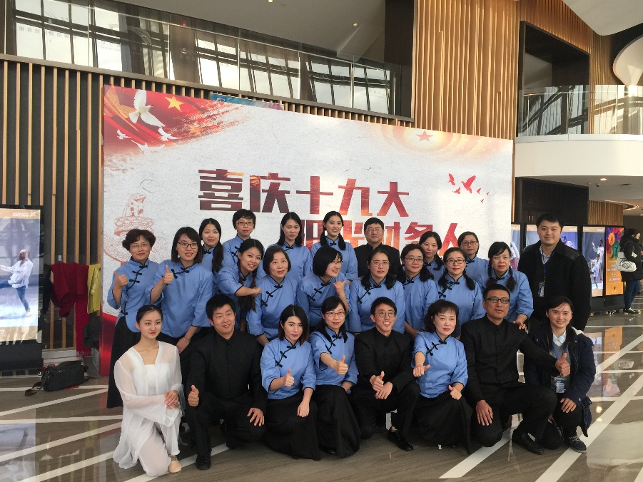 我校财务处全体成员以积极、阳光的财务人风貌朗诵了由社科部花艳红老师撰写的诗篇《祖国,我们与您同在》。通过一幅幅诗篇的展开,向观众们传达了我们财务人对祖国深深的热爱,“财务人用舞动的数字,谱出时代飞跃的交响”展现新时代财务人饱满的精神状态,朗诵获得全场观众的热烈掌声,最终经专业评委打分,我校节目荣获三等奖佳绩。