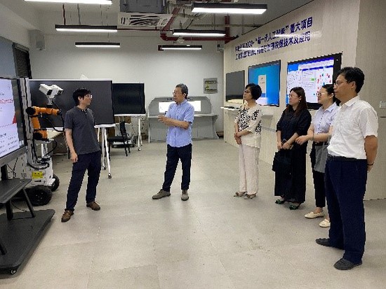 6月21日,在洞泾镇综合党委专职副书记张蓉梅、洞泾人工智能发展公司总经理冯玉华的带领下,上海普览智能科技有限公司总经理张瑄、研发经理王耀庭一行访问电子电气工程学院,双方开展产学合作交流,电气学院党委书记范君晖、副院长高永彬、党委委员武鹏,以及青年教师臧甲杰、吴晨谋等出席活动。