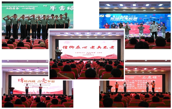 活动以“党建红”“军营绿”“经贸金”“科创蓝”“志愿橙”五个篇章演绎。老兵宣讲团与机汽学院退伍大学生代表合唱《强军战歌》,两院师生表演主题宣讲《情暖西藏 格桑花开》和歌舞秀《向新制造 向光而行》,分享了感人至深的志愿故事,充分展现了老兵们和两院大学生优良的精神风貌。