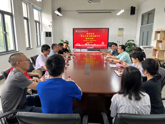 6月20日,浙江大学工程训练国家级示范教学中心党委书记、常务副主任张林初,组织委员、副主任钱俊等一行9人莅临我校工程训练中心(创新创业学院)调研交流。中心党总支书记王成涛,副书记、主任陈浩及相关室部负责人出席交流会。