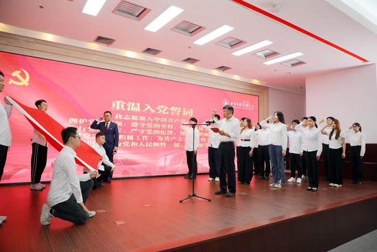 党课尾声,校特邀党建组织员、退休党员张健明老师带领与会党员共同重温入党誓词,在铮铮誓言中回望入党初心、坚定理想信念。