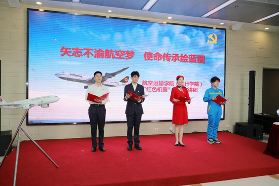 城市轨道交通学院党委“领航”青年讲师团唐诗颖、车泰宇、李琼、曹明扬以“初心、接力和启程”为题讲述强国建设、轨道先行中的责任和担当。机械与汽车工程学院车迷俱乐部党支部书记汪茹悦、新时代“智造+”师生思政宣讲团季玲玲、陈新宇、李阔、范纪翔现场演绎了一场精彩的汽车人用实际行动践行着交通强国建设的“机汽青年说”。管理学院旅游与营销系教工党支部书记闫国东与她的学生、邮轮与经济专业班长王昕怡以对话形式,展示了邮轮人向海图强、筑梦深蓝的探索实践。航空运输学院“红色机翼”师生宣讲团杨馨羽、张则栋、成俊祺、陶俊杰声情并茂地讲述航空人的报国之志。