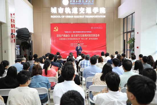 6月24日下午,上海市教卫工作党委系统第五季“伟大工程”系列示范党课之上海工程技术大学“深化产教融合,奋力谱写交通强国建设的新篇章”在松江校区“交通中国”党性教育阵地、图文信息中心第二报告厅精彩开讲。党课对标国家建设交通强国的重大战略和服务上海经济和社会发展的办学宗旨,围绕产教融合、科教融汇这一主题,讲述了学校党委带领师生践行共产党人的初心和使命。