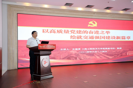 史健勇为毕业生党员讲授专题党课《以高质量党建的奋进之举 绘就交通强国建设新篇章》,并代表学校党委寄语毕业生党员。他指出,在新的征程上,程园学子要心怀“国之大者”,牢记“勤奋、求是、创新、奉献”,践行向下扎根、向阳而生,将“小我”融入“大我”,自觉当好“伟大建党精神”的传承者、弘扬者,做中国式现代化、交通现代化的建设者、推动者,让青春之花绽放在祖国和人民最需要的地方。广大毕业生党员要脚踏实地、久久为功,将习近平新时代中国特色社会主义思想等党的创新理论转化为指导实践的本领,为实现“两个一百年”奋斗目标、实现中华民族伟大复兴共同奋斗!