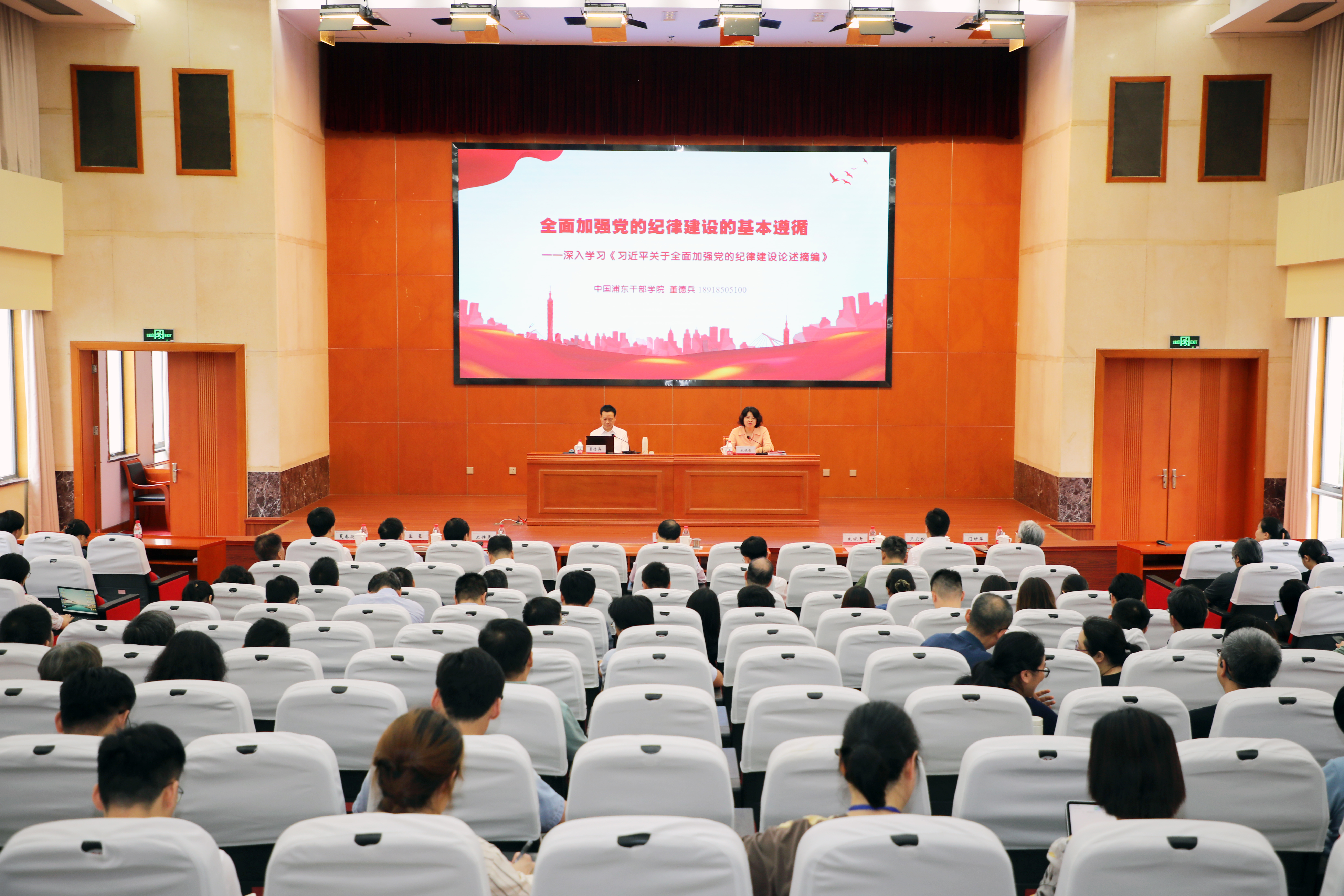 6月28日下午,学校举行党委理论学习中心组(扩大)学习会,特邀中国浦东干部学院董德兵教授作《全面加强党的纪律建设的基本遵循——深入学习〈习近平关于全面加强党的纪律建设论述摘编〉》专题辅导报告。校党委理论学习中心组成员,全体中层干部,辅导员代表参加会议,会议由校党委副书记、副校长朱晓青主持。