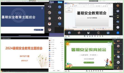 本科生辅导员王新燕、王小萌强调暑假期间外出要注意交通安全、饮食安全,留校同学要遵守校园管理规定,不在宿舍使用违禁物品;制药工程系主要通过线上方式召开主题班会,辅导员殷昊、王一凡通过现实案例要求全体同学要做好网络安全防范,牢记“三不一多”;思政辅导员张晓普主要强调了暑期社会实践应注意事项及意识形态安全防范;环境工程系班主任郝宗娣老师在安全教育班会上叮嘱大家要注意做好疾病防控、消防安全,严防溺水事故、预防涉毒违法,还要度过一个安全、文明、快乐的暑假。学院团委还推出了“暑假安全提醒小贴士”专题推文,提醒大家牢记安全提醒。