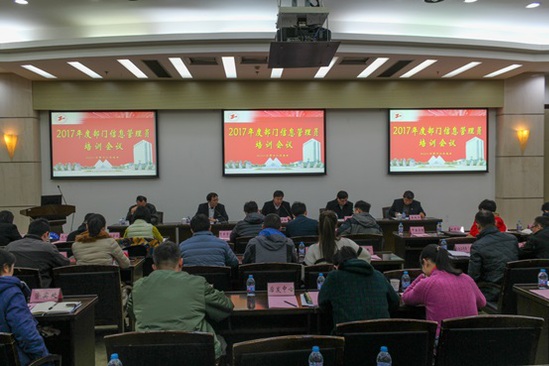 信息化办公室李荣正主任向信息管理员展示了2017年度学校信息化工作主要成果,并对2018年的信息化工作做了美好的展望。他指出,校园卡服务的全面升级、大数据决策支持系统的构建、服务型机关信息化建设、云盘的全面推广、微信企业号中各类便捷服务的创新以及全校信息安全的有效保障……这些都是信息化工作队伍在2017年积极探索,辛勤实施的信息化创新成果。