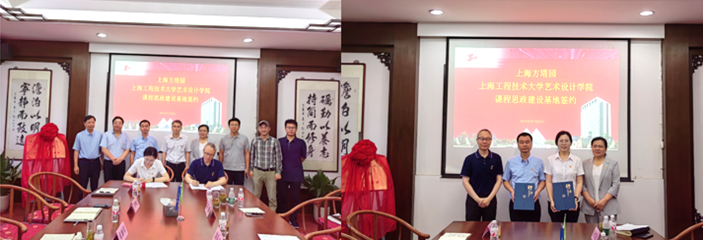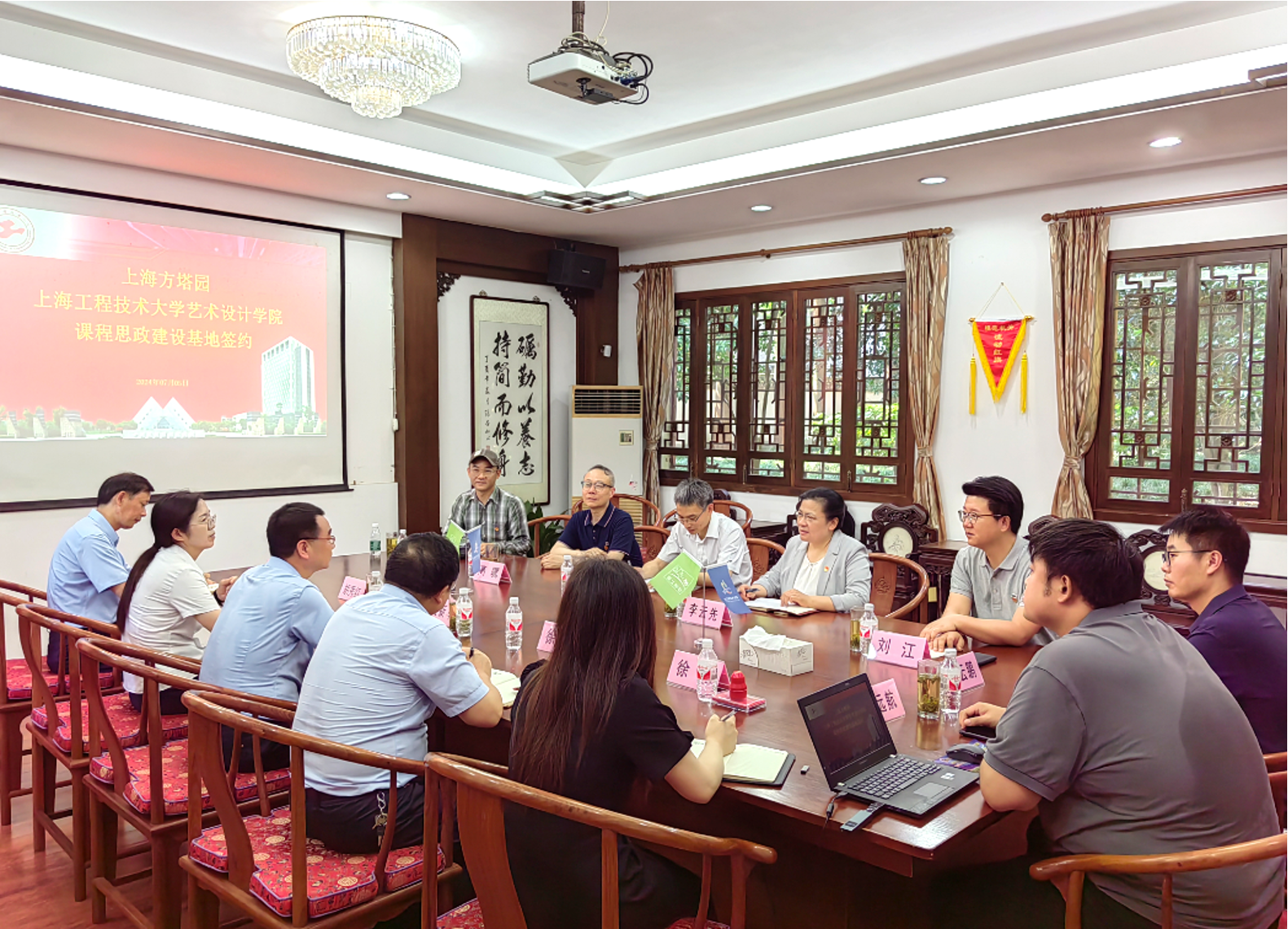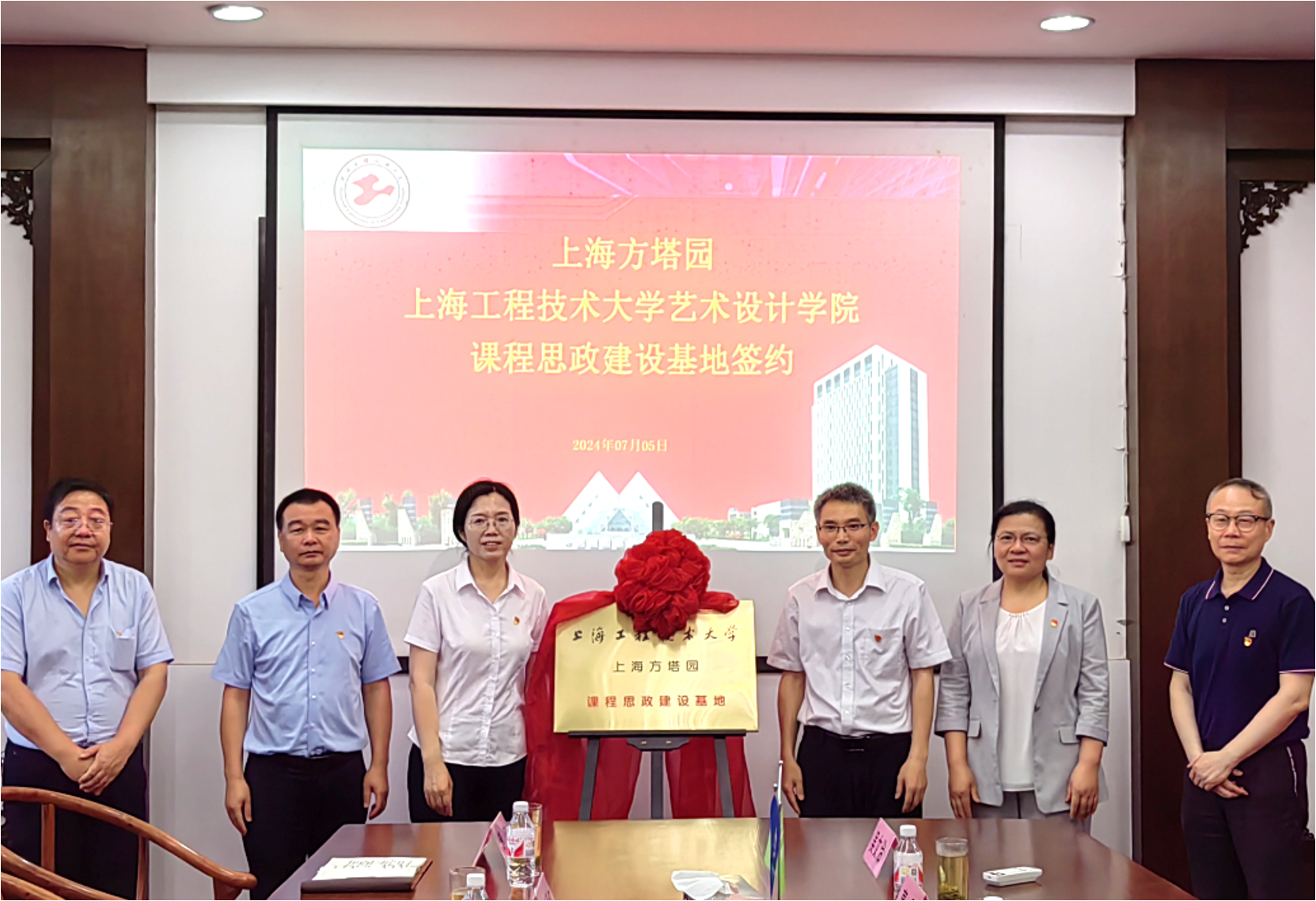 7月5日下午,艺术设计学院党委赴方塔园开展课程思政基地建设签约揭牌仪式。学校教务处处长饶品华,艺术设计学院党委书记李云先,学院党委副书记、院长高瞩,学院党委副书记刘江,副院长吴文治,上海方塔园党支部书记吴新军,主任胡秀红,副主任徐斌,办公室主任黄忠,团支部书记徐徐,艺术设计学院教师代表参加活动,活动由吴文治主持。