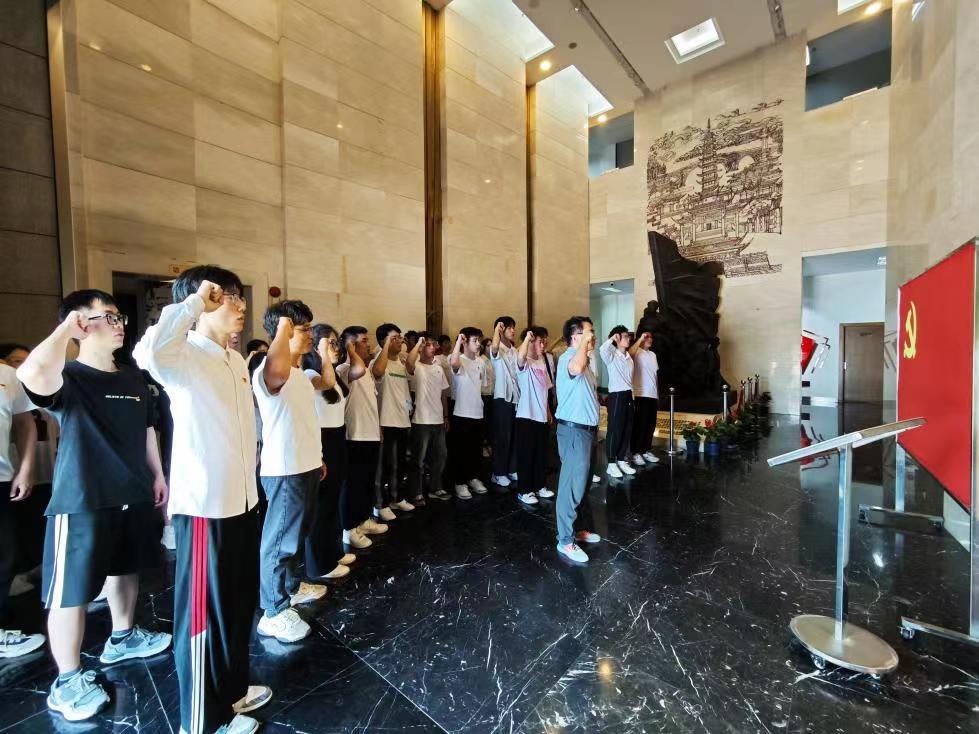 集中宣誓前,在讲解员的带领下,党员们向烈士纪念碑敬献花圈,全体默哀。随后,集体瞻仰烈士陵墓,观看英烈教育片,追寻红色记忆。在参观英烈纪念馆中,讲解员重点介绍松江各个时期具有代表性的22位烈士的英雄事迹,一件件书籍,一张张照片,都凝聚着党的精神和力量,无声的激励着新时代青年党员,要坚定理想信念,继承革命先烈的不朽精神,踔厉奋发,砥砺前行,不负青春韶华,勇担时代使命。