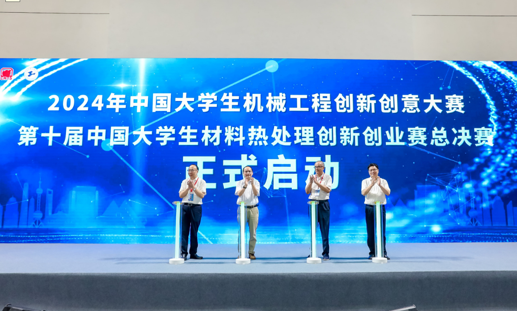 上海工程技术大学校长俞涛、副校长夏春明、中国机械工程学会专务罗平、全国热处理学会理事长徐跃明共同启动总决赛。