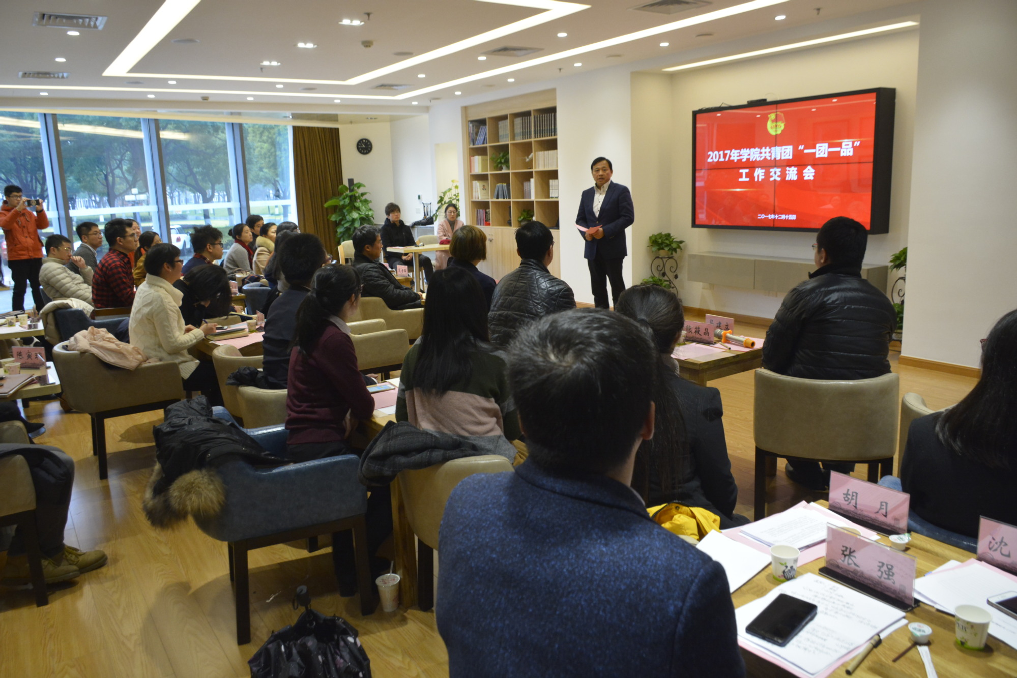 校党委副书记、副校长史健勇在讲话中对学院共青团一年的工作成绩和汇报给予了肯定。他认为,此次交流会不仅是一个展示的舞台,也是一个相互学习、相互交流的平台,更是一个能够更好总结过去、凝聚力量、共同展望2018年的平台。史健勇副书记、副校长对2018年的共青团工作提出了四点要求:一是重视教育目的,要用青年人喜欢的方式来实现教育目的,寓教于乐,要加强学生理想信念教育,将他们的奋斗融入于国家发展和实现中华民族的伟大复兴中。二是考虑抓手,要做好融合发展,团干部要成为学生工作、共青团工作的行家,着重思考将第一、第二课堂融合发展,并与网络的空间和社会课堂有机结合。三是要与时俱进,要学会站高望远、顶天立地,学会站在学校的层面,思考完善共青团创新创业教育的机制。四是注重技巧,要强化主体意识,要把团结引领培养学生作为工作的主体,做好系统设计,关联融合,全面发展。