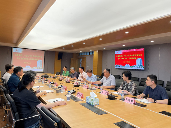 7月19日上午,退休局级直属党支部牵头,与校关工委代表、老教协代表、党委离退休工作部党员代表,在仙霞路725会议室开展联组会议,集中收看了中共中央举行的介绍和解读党的二十届三中全会精神新闻发布会,并在会后组织与会成员开展了宣传贯彻大会精神座谈会。
