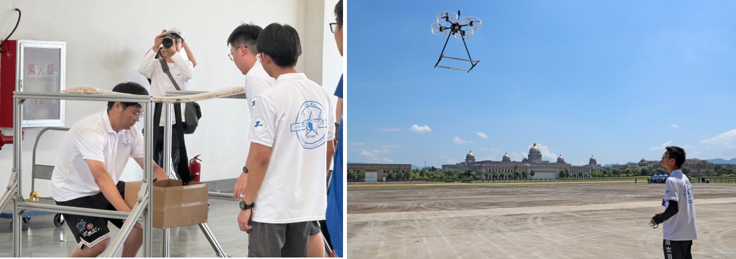 参赛选手们无惧高温“烤”验,始终保持着奋勇争先的斗志和意气风发的姿态,展现了航飞学子担当有为、团结拼搏的昂扬风貌。本次比赛中,航飞学院学生获得了电动滑翔机飞行控制项目二等奖、多旋翼无人机任务飞行项目二等奖、机翼静载项目三等奖、微型固定翼限距飞行项目三等奖,所有参赛项目全部入围2024年中国大学生飞行器设计创新大赛全国总决赛。