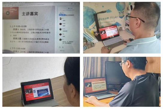 8月8日,工程训练中心党总支组织广大党员干部专题学习党的二十届三中全会精神,线上收听收看由中共上海市委讲师团办公室举办的学习贯彻党的二十届三中全会精神基层理论宣讲骨干培训,工程训练中心党总支班子成员、中心科(职)级干部、各支部全体党员参加学习。