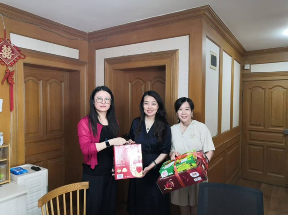 在走访中,袁蓉与两位党支部书记亲切交谈,代表党总支对她们在党建工作方面做出的贡献表示感谢,并送上慰问品。袁蓉表示,火车跑得快、全靠车头带,党支部书记是基层党组织的领头人,其个人品质、才能、工作方法对党员、群众的凝聚力起着重要作用,勉励两位支部书记要敢担当、善作为,始终保持蓬勃朝气及干事的激情和信心,立足岗位,脚踏实地,切实把党的各项工作做细做好。