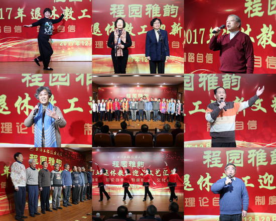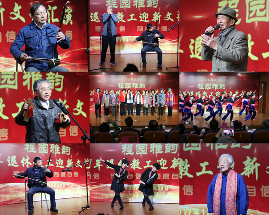 “程园雅韵”—2017年退休教职工迎新文艺汇演由我校退休教工自编自导,互相协作共同创作完成,通过文艺汇演活动进一步增强了道路自信、制度自信、理论自信、文化自信,传递正能量,展示我校退休教工奋发向上的精神风貌、讴歌中国共产党的正确领导、体验美好的退休生活。