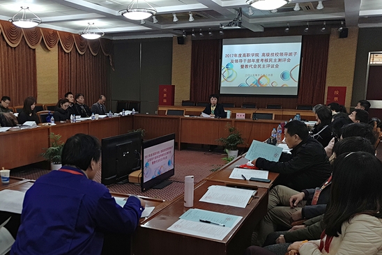 按照校党委组织部统一安排,12月20日下午,高职学院在虹口校区综合楼9楼报告厅召开2017年度领导班子及领导干部年度考核民主测评会暨教代会民主评议会。会议由学院、校党委书记沈海庆主持。学院、校领导班子成员、科级干部代表、党代表、高职称教师代表、民主党派代表与全体学院教代会代表参加了会议。校党委组织部组织科长周晓舟同志,校工会刘翠慧同志参加会议。