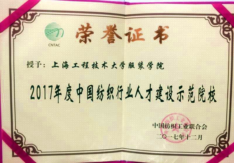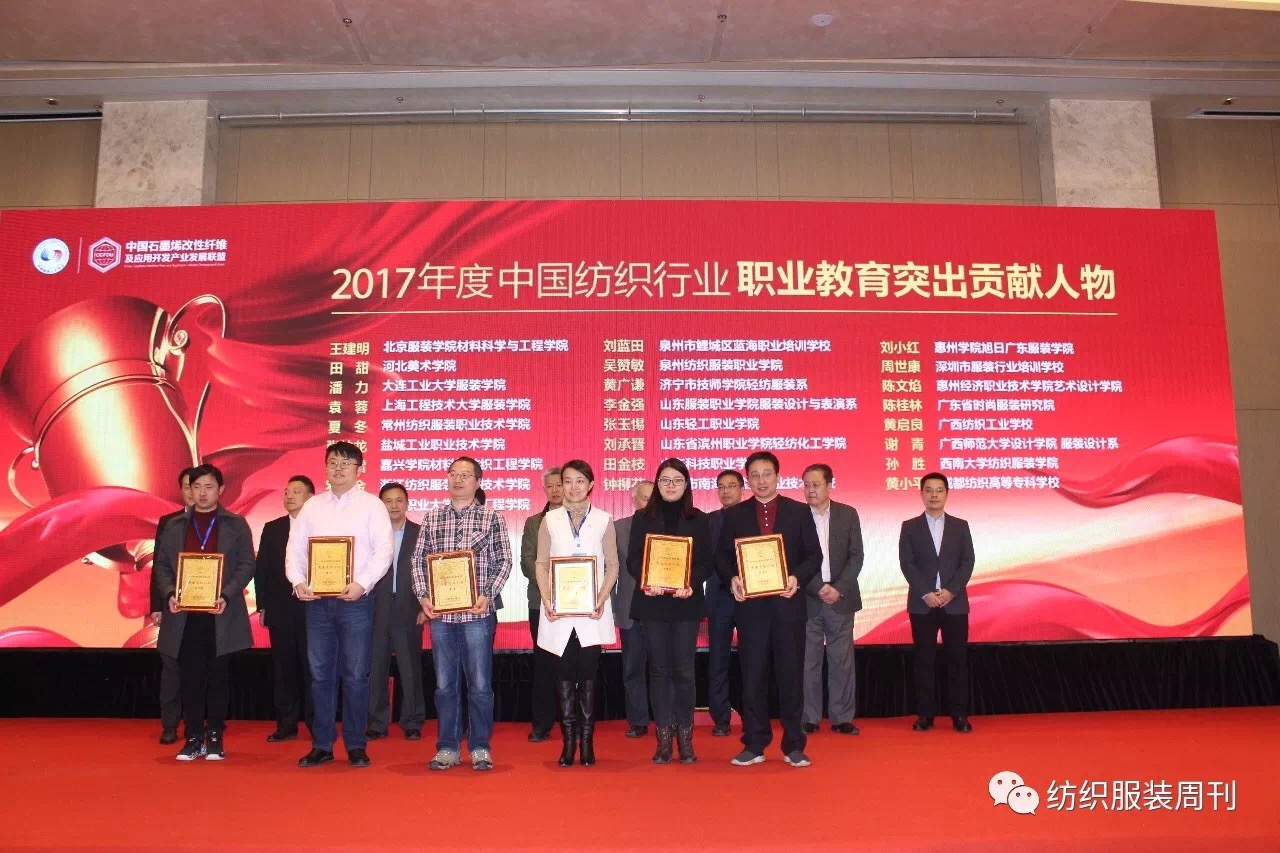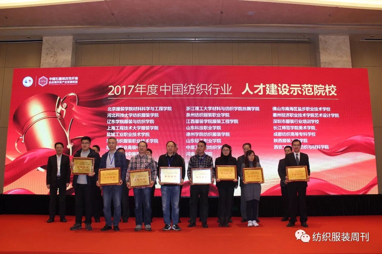 12月20日,服装学院党委书记袁蓉等一行赴山东济南,参加由中国纺织工业联合会主办的2017年中国纺织人才大会。会上我校服装学院荣获“2017年度中国纺织行业人才建设示范院校”称号,袁蓉书记荣获“职业教育突出贡献人物”称号。