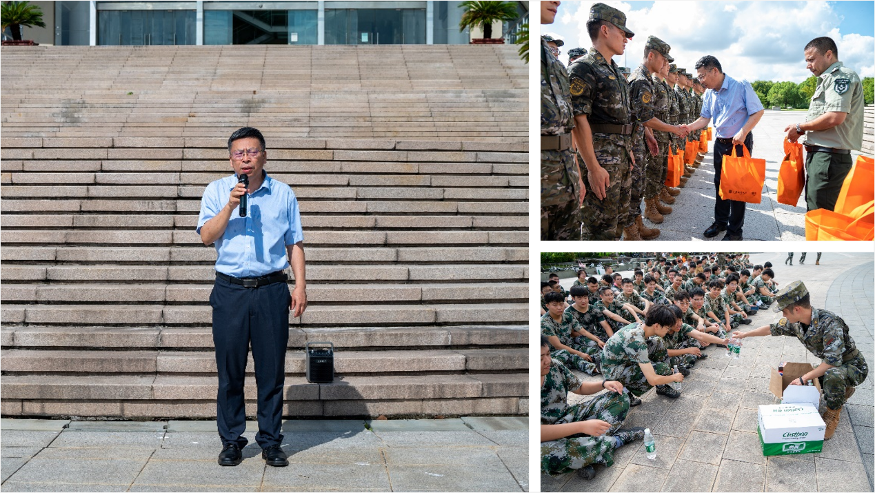 8月29日,机械与汽车工程学院院长方宇、党委副书记黄中子前往军训场地,对正在接受训练的学生和辛勤付出的教官进行慰问。