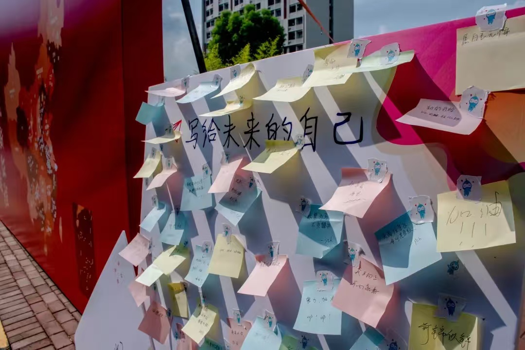 在“写给未来的自己”留言板上,新生写下了对未来四年学习的期望。