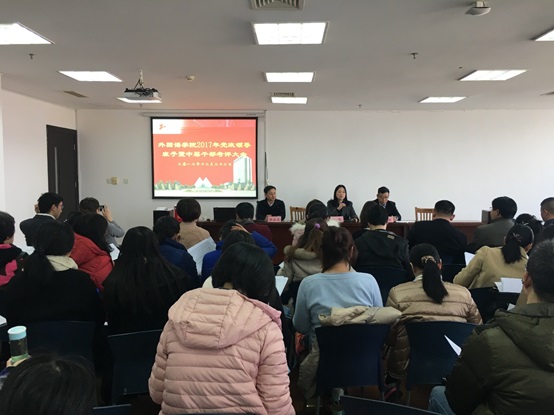 12月22日下午,外国语学院在行政楼1508会议室召开2017年度领导班子和领导干部民主测评会,外国语学院全体教师参加了会议,会议由外国语学院王刚老师主持。