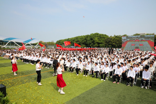 开学典礼在雄壮的国歌声中拉开帷幕。