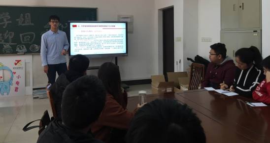 为了在全校大学生中深入推进学习宣传党的十九大精神,克服老师讲、学生听这种宣讲方式的不足,推进十九大精神学生自己讲、自己学活动,学校党委宣传部组织了“党的十九大精神”大学生宣讲团,深入大学生中进行宣讲。本次大学生宣讲团注重贴近实际、贴近生活、贴近同学,用身边的事、自己的语言、学生熟悉的方式宣讲,力求广大学生听得懂、听得进、听得欢,通过本次“十九大我们自己讲”宣讲活动,有力的激发全校同学对党的十九大精神学习的热情。