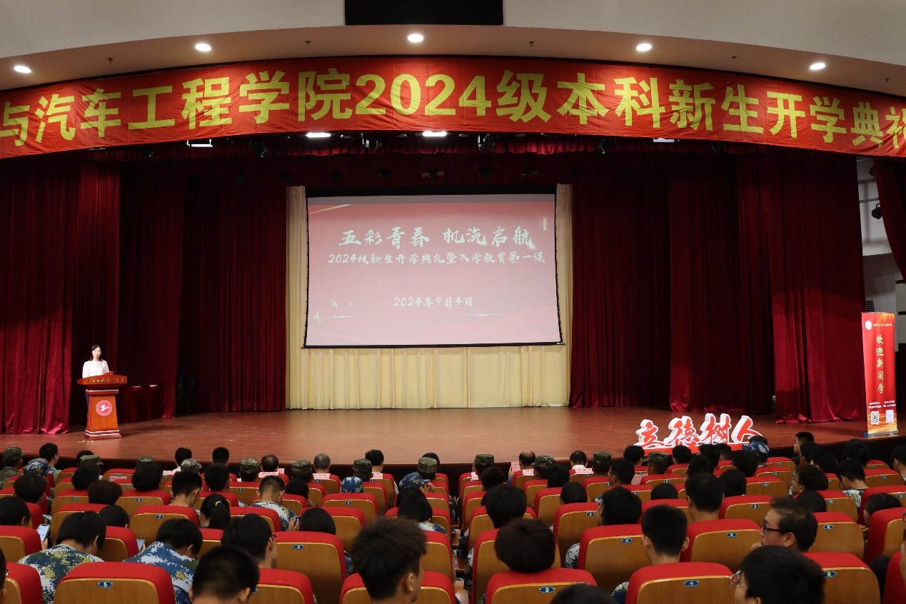 9月4日下午,机械与汽车工程学院2024级本科生新生开学典礼在志宏堂举办。学院党政领导班子、松江老兵讲故事宣讲团成员、军训承训教官、校友代表、新生辅导员以及全体2024级本科生参加典礼。本次典礼由学院党委副书记黄中子主持。