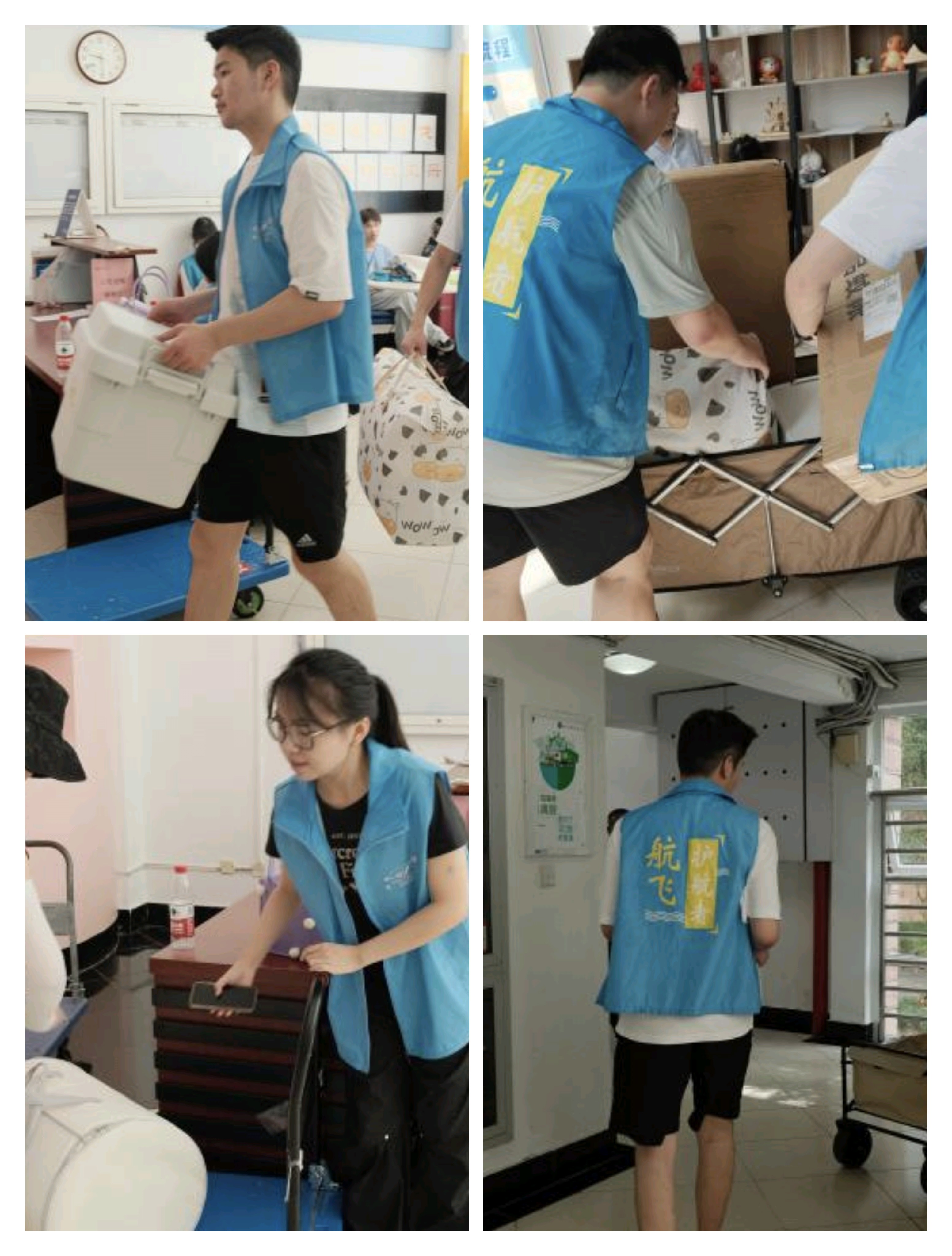 迎“新”护航。航飞“护航者”们身着蓝色志愿者马甲,以良好的精神面貌迎接新生们的到来,为学院迎新工作保驾护航。每一位“护航者”都努力帮助新生,给予他们关心,让他们感受到来自航飞学院的温暖。