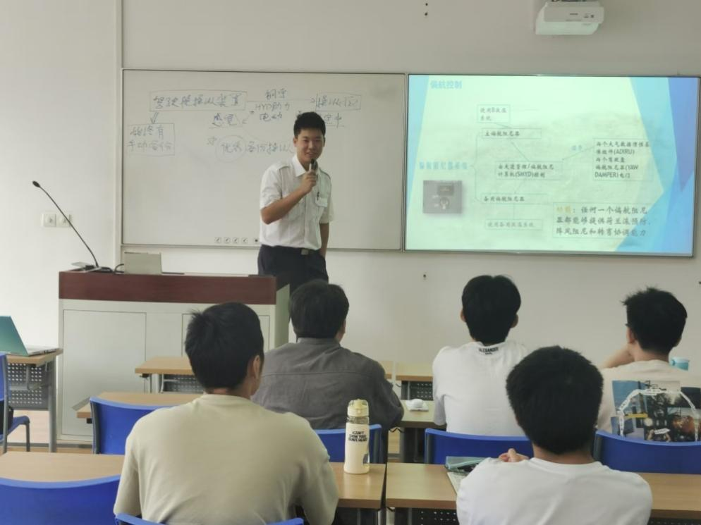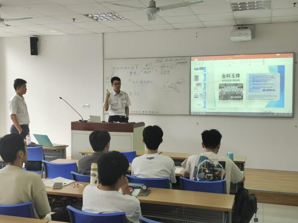 9月6日上午,为进一步强化产教融合,落实引智引师入校,航空运输学院(飞行学院)邀请东方航空股份有限公司刘哲清、周知浩两位飞行员为学生讲授“飞行控制系统”课程。