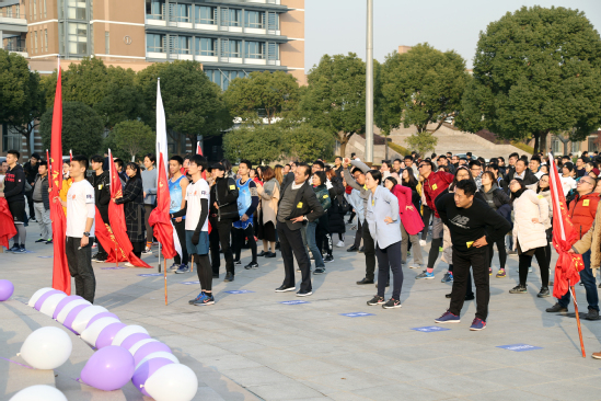 伴随着健美操队的精彩表演,活动拉开序幕,动感的舞姿伴随欢快的音乐,瞬间点燃了现场人员的参与热情。紧接着,在动感的音乐声中,师生们进行了充分的热身。