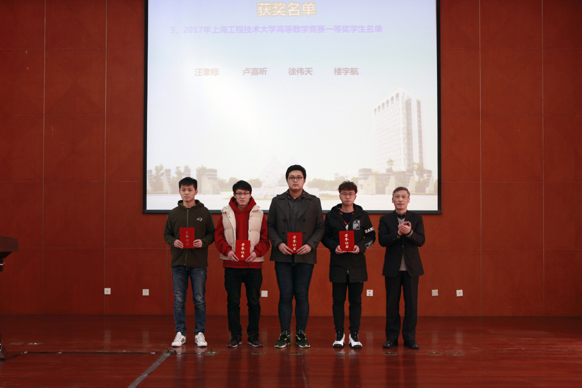鲁嘉华副校长在致辞中对各位获奖同学表示祝贺,他指出了基础学科竞赛的重要性,肯定了学院对基础学科竞赛的付出。希望依托基础学科竞赛的平台,一方面能培养具有创新精神的人才,不断夯实学生们的基础学科知识,应对不断更新的知识环境;另一方面以学科竞赛为导向,理论联系实际,调动更多学生的学习热情,冲刺更高的奖项。特别提到日前由中国高等教育学会发布的《中国高校创新人才培养暨学科竞赛评估结果》,我校在TOP300的排名中取得124名的成绩,分析了奖项和积分情况,指出基础学科竞赛的努力方向。最后,鲁嘉华副校长再次强调数学、物理及英语各个基础学科的重要性,规划2018年学校基础学科竞赛的工作方向。