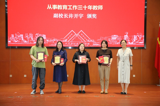 许开宇副校长为“从事教育工作三十年”教师代表颁奖。