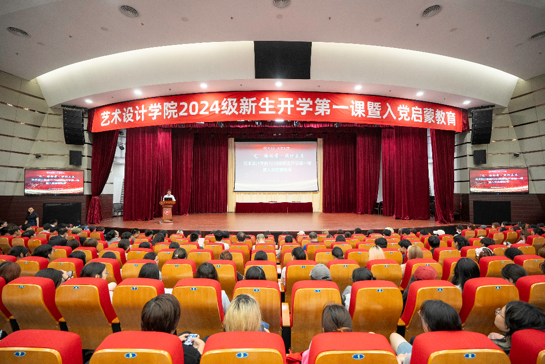 9月11日,艺术设计学院在图文信息中心志宏堂举办“艺路向前·设计未来”——2024级新生开学第一课暨入党启蒙教育,艺术设计学院党委书记李云先,党委副书记、院长高瞩,副书记刘江,副院长徐江华,各系主任、全体新生班主任、辅导员以及全体新生出席活动。