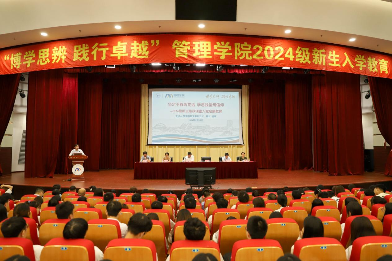 为了帮助2024级新生更好地适应大学生活并尽快融入学院大家庭,9月13日,管理学院在志宏堂主会场与其他分会场举行了丰富而庄重的入学教育活动。校党委副书记史健勇出席,管理学院院长胡斌,副院长邱梦华、夏志杰、罗娟,系主任、全体2024级新生班主任、学院2024级辅导员和全体本科、研究生参加。学院党委副书记张强主持。