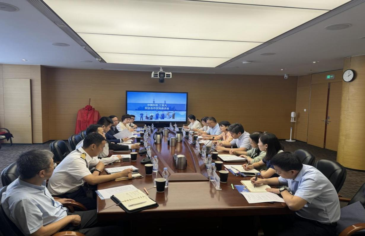 东航客舱服务部纪委书记谢猛、我校学生工作部(处)部、研究生工作部、教务处及相关学院与会人员,就招生就业、订单式培养、实习基地建设、科研合作等方面进行了深入交流。