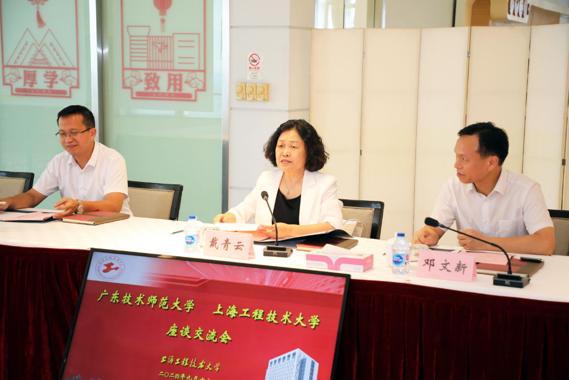 9月18日下午,广东技术师范大学党委副书记、校长戴青云,副校长邓文新一行来我校调研。校党委副书记、校长俞涛,副校长王岩松接待了戴校长一行,校长办公室、规划处、研究生处、信息化办公室、机械与汽车工程学院、电子电气工程学院相关负责人参加座谈会。